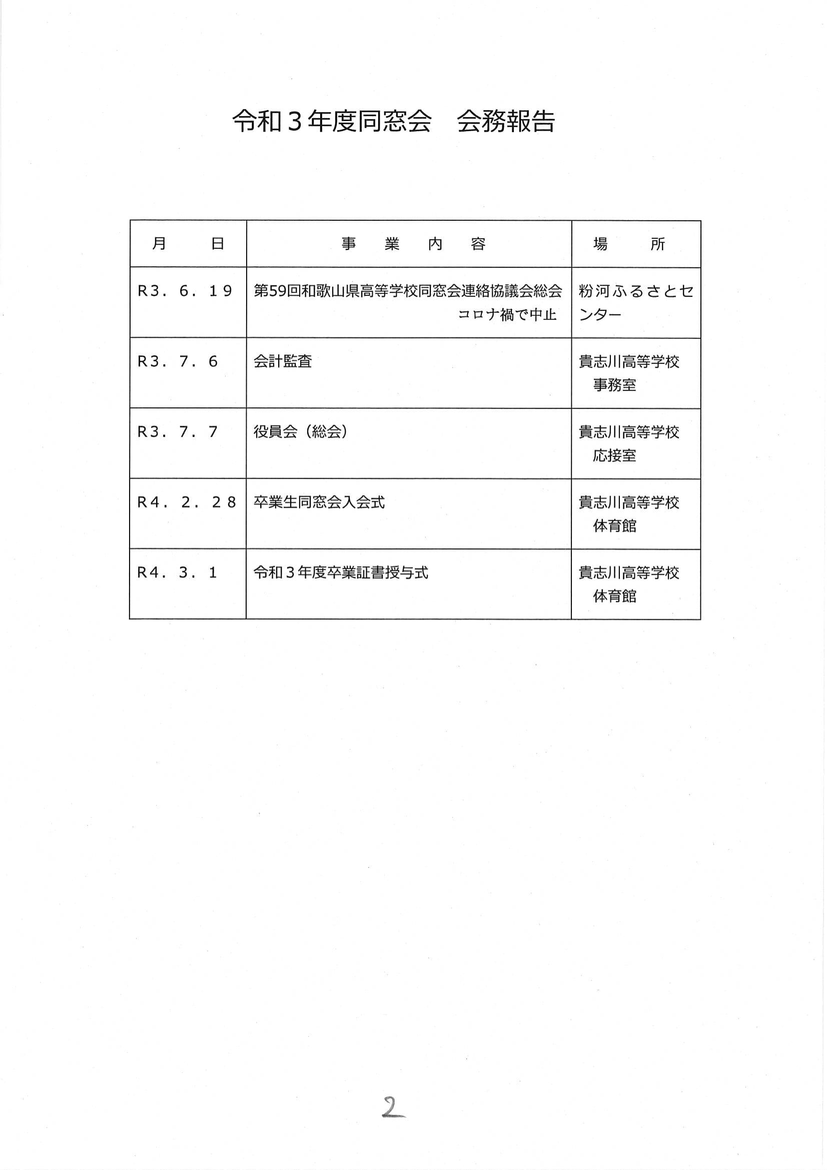 同窓会役員会資料(P1~P2)会務報告