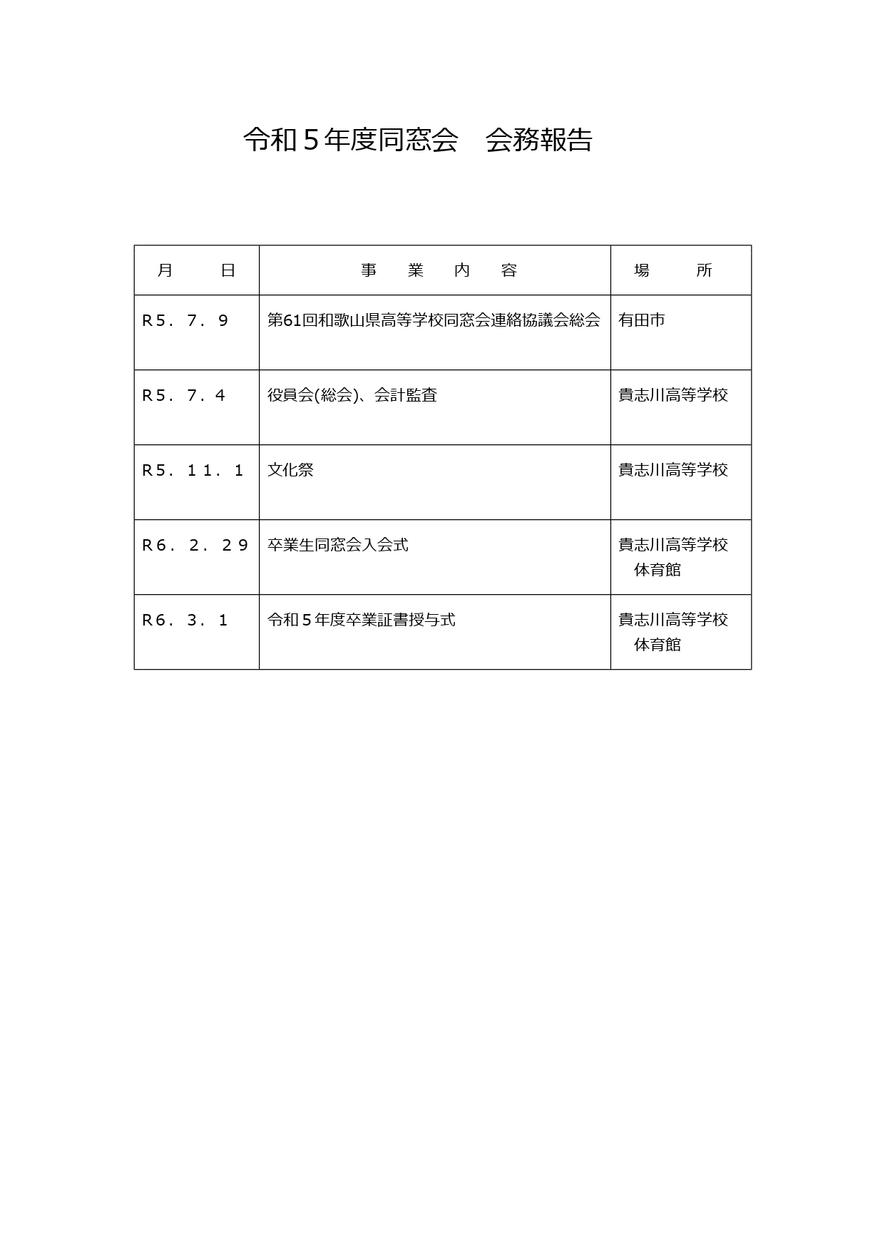 新型コロナ感染症が第5類に移行される中、 なかなか活動ができず、大変難しい状況ではございますが、今後も、貴和 ・貴志川高等学校同窓会の活動にご協力宜しくお願い致します。